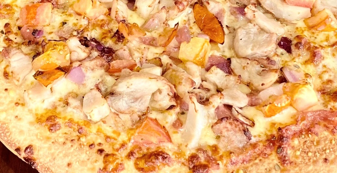 Caramelised onion, fetta, pumpkin, oregano, sliced mild chorizo and mozzarella cheeseChoose one