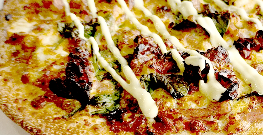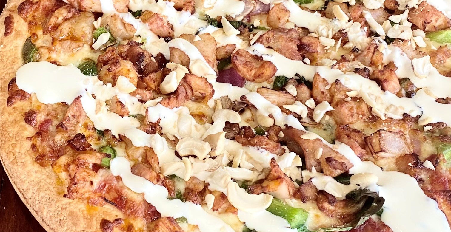 Sour Cream Base, Chicken, Onion, Pineapple, Bacon, Parmesan, Cheese, & BBQ SauceChoose one